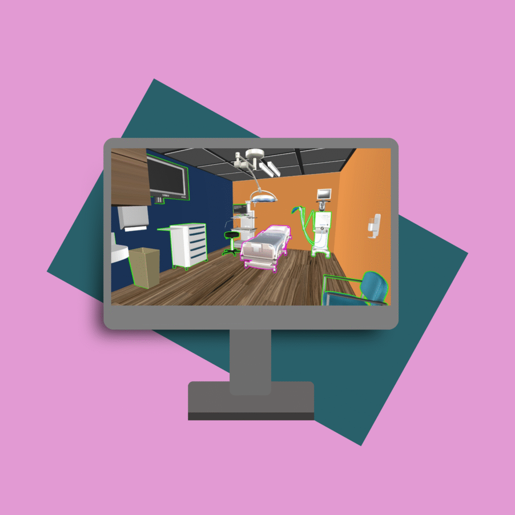 To create the virtual environment, my team and I developed models using the Blender software. Our model references were based on a photo of a standard hospital room provided by the healthcare team during our initial discussions. The following models are ones that I created: